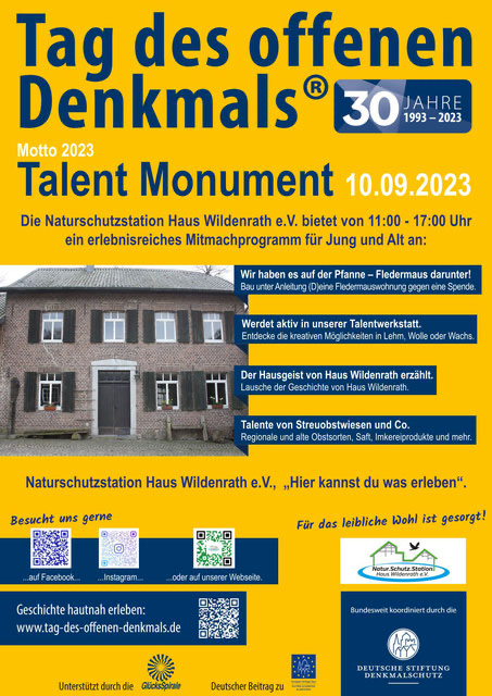 Auch in diesem Jahr nimmt die Naturschutzstation Haus Wildenrath e.V. wieder am "Tag des offenen Denkmals" teil. Schaut doch mal vorbei - auch die Dorfgemeinschaft unterstützt die Aktion mit einer spannenden Online-Rallye ☺️